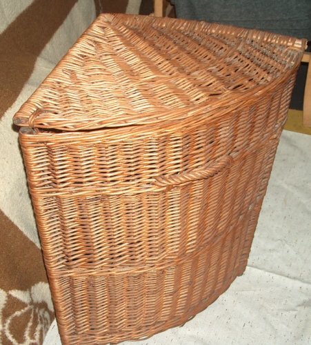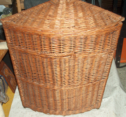 Wäschenkorb / Eck-Korb Artikelstandort: Lörrach Beschreibung: Weidenkorb ? mit Deckel für Platzierung in der Raumecke, Wäschekorb für die platzsprarende Positionierung in der Ecke.