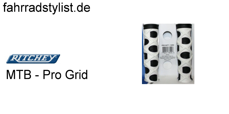 Beschreibung Dual Compound Kraton Gummi, rutschsicher durch rautenförmige Profilierung, ergonomisch im Design, mit auffälligen Ritchey Logos Ritchey, Griffe MTB PRO GRID, schwarz,weiß, 127 mm, Dual Density, offenes Ende mit Stopfen, mit Verpackung, NEUES PRODUKT 2012, UVP 7,60 €, HstNr: 38-226-734 |