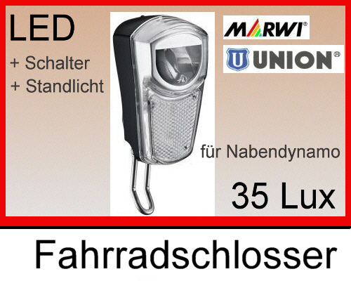 Fahrradlampe mit LED-Scheinwerfer Union f. Nabendynamo 35 Lux UN-4265