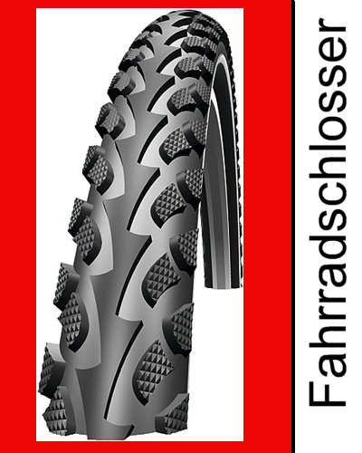 Schwalbe / Reifen - Black JackNeu: 2010 Der neue Star in der Active Line. Vielseitiges Profil mit gutem Grip und angenehmem Rollverhalten. Leicht durch LiteSkin-Seitenwand und die hochwertige 50 EPI Karkasse. Einstufung von SchwalbeSpeed: 3 von 5 Punkten Grip: 3 von 5 Punkten Pannenschutz: 3 von 5 Punkten Lebensdauer: 3 von 5 Punkten Big Apple![]() Den Original Balloonbike Reifen BIG APPLE gibt es in 50 und 60 mm Breite. Er ist serienmäßig mit Kevlar-MB-Gürtel und Reflexstreifen ausgestattet. weitere Informationen ...Ballonreifen Big Apple jetzt mit »Liteskin«