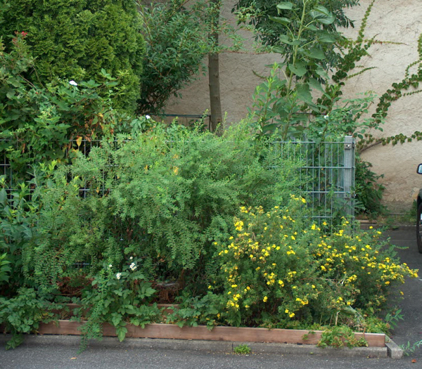Buschwerk in Etagen ...... gewährt Sichtschutz, beschattet den Boden, ist pflegeleicht und nachhaltig ... robuste Pflanzen mit saisonal abgestufter Blütenbildung und schwachem Wuchs bilden eine "ungezügelte Hecke" Gehölze bilden an ihrem jeweiligen Standort als Ergebnis komplexer Beziehungen zwischen Krone und Wurzel ein physiologisches Optimum aus. Dieses Optimum richtet sich dabei nach den Möglichkeiten des Standorts, insbesondere nach Nährstoff- und Wasserversorgung sowie den Konkurrenzverhältnissen um Licht. Viele Maßnahmen hefen bei der Gestaltung eines pflegeleichten Gartens. Zu den gut schnittverträglichen Arten zählen z.B. Hasel, Weißdorn, Roter Hartriegel und Liguster, aber auch Hainbuche und Buche. Die Schlehe reagiert empfindlich auf Rückschnitt am alten Holz. Schneiden von Büschen, Sträuchern und Hecken,Frühlingsblüher werden direkt nach der Blüte geschnitten. Sommer- und Herbstblüher werden im kommenden Frühjahr nach der Blüte geschnitten. Frühlingsblüher, wie z.B. Forsythien, blühen am Vorjahrestrieb, Sommer- und Herbstblüher, wie beispielsweise die Schmetterlingssträucher, blühen am diesjährigen Trieb