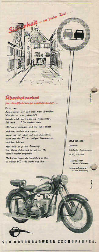 Zeitgnössische Werbung für MZ und andere Produkte rund um das Thema Motorrad